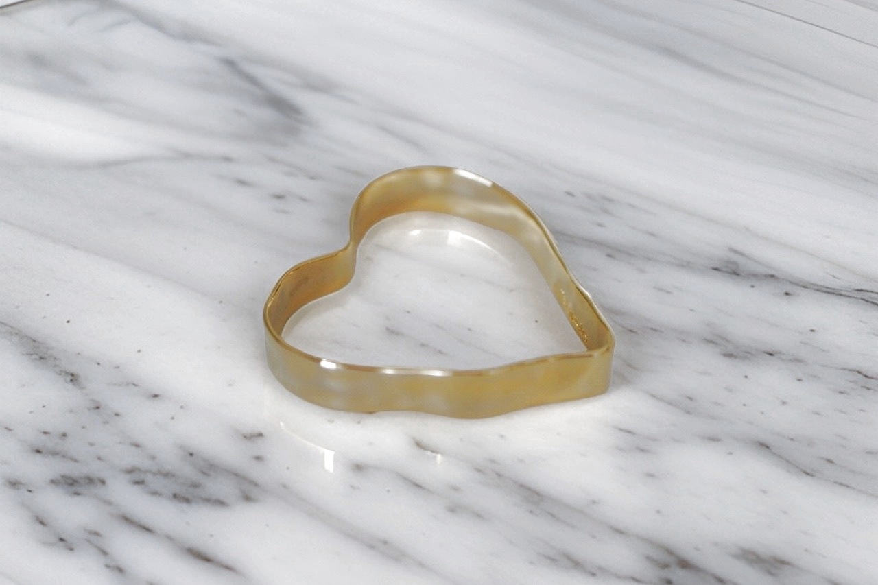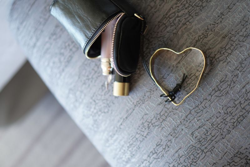 スタイリッシュなハートのバングルに簡単に取り外しのできるpetite pouchをお付けしたアイテム。